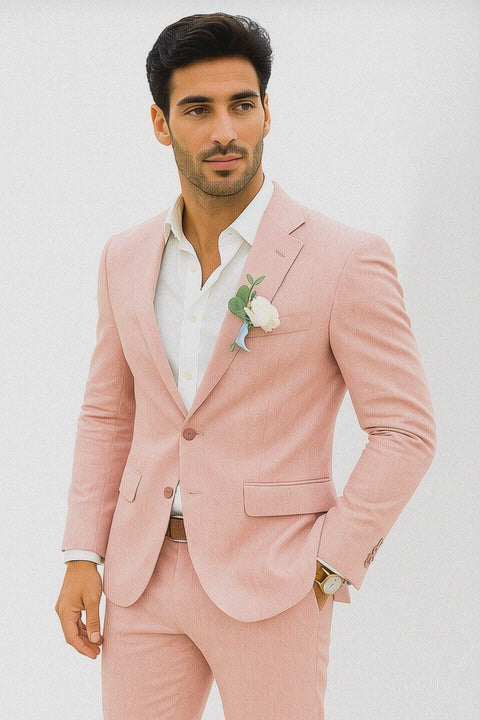 Mens Cotton Suit - Pink Summer Suit