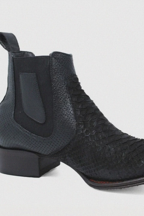 Los Altos Men's Genuine Python Skin Square Toe Ankle Boots - Black