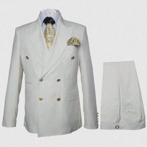 Men’s Off-White Double-Breasted Suit – Modern Slim Fit Elegance (2-on-6 Closure)