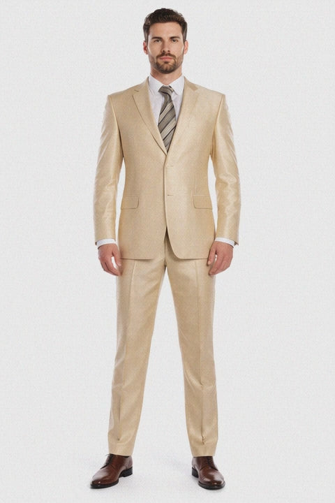 Beige ~ Khaki ~ Tan ~ Champagne Suit Shiny Flashy Sharkskin Classic Fit Suit