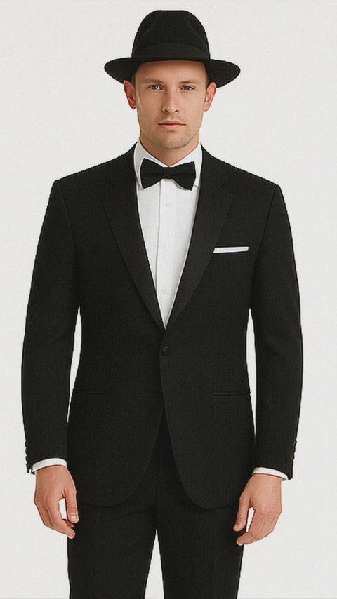 All information is encrypted and transmitted without risk using a Secure Sockets Layer (SSL) protocol. Group Orders: Receive a free Shirt & TIE & HANKIE (Any Color) Peak Collar One Button Super 120's Wool + Shirt + Bow Tie $199. Color – Black. Fabric – Super 120’s woolen blend poly rayon microfiber. Single breast, one button and satin front pockets. Slacks provides quarter pockets and a tuxedo satin stripe. Padded shoulder and peak collar. Canvas chest piece & low button stances. Pant: Pleats and unhemmed bottom. This tuxedo reaches the high quality fabrication and design is outstanding. This item is ideal for weddings, proms, black tie, business and other formal events. N SHOP WITH CONFIDENCE SHOPPING ON MensUSA.COM IS SAFE AND SECURE. GUARANTEED!