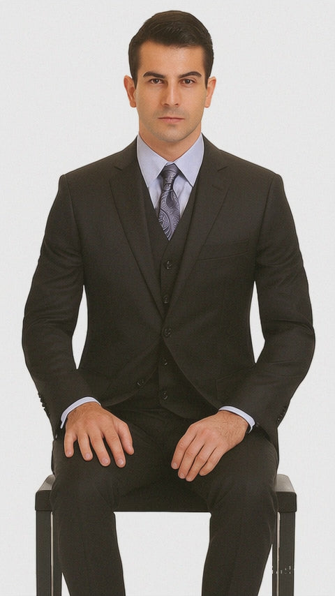 Vitali Brand Suits - Men's Charcoal Regular Fit Vested Suit