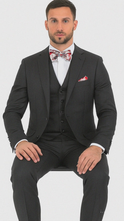 Vitali Brand Suits - Slim Fit Suit - Fitted Suit Men's Vent 2 Button Sharkskin Shiny Vested 3 Piece Suit Charcoal Online Discount Fashion Sale