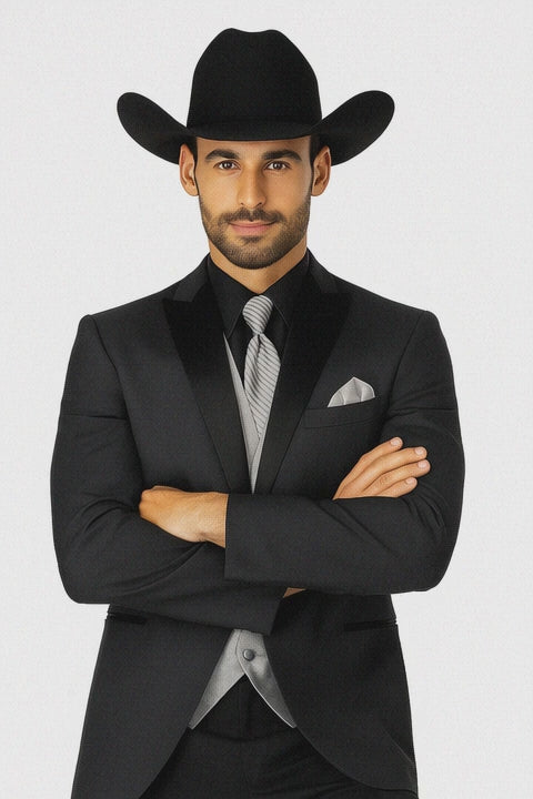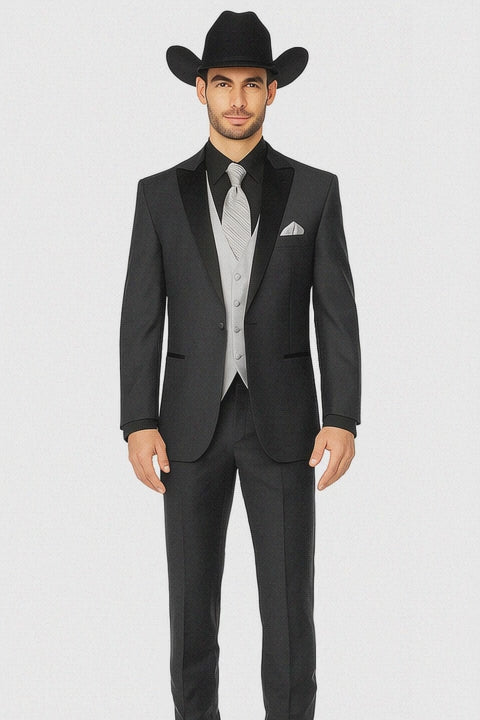 Mens 1 Button Peak Lapel in Grey Cowboy Suit - Country Wedding Suits