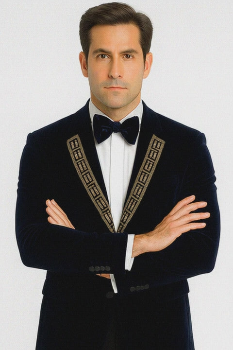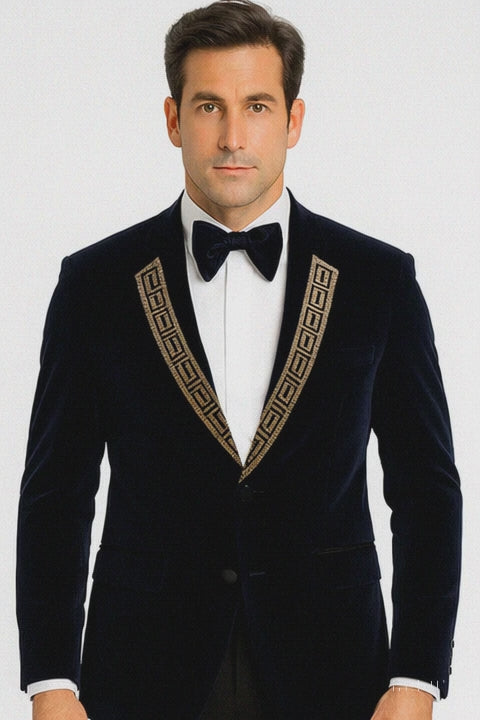 SKU#JA58428 Velvet Suit Matching Velvet Pants - Navy Suit