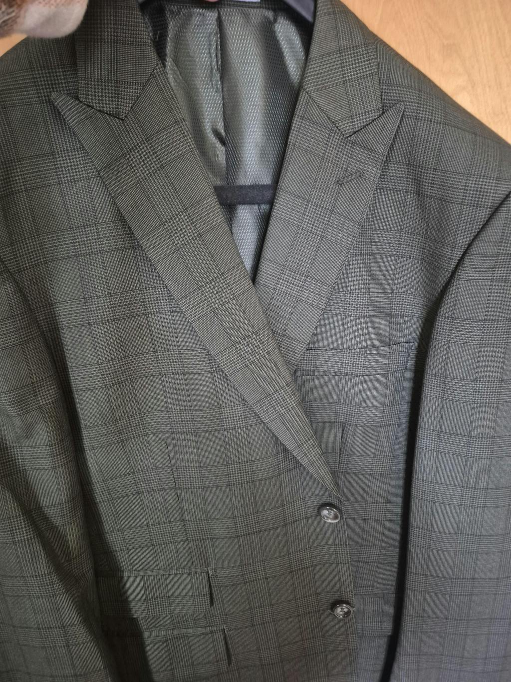 “The olive color is unique and elegant. The windowpane pattern gives it a luxurious feel. Fits perfectly after a simple hem. I wore it to a wedding and felt amazing.”