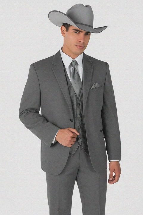 2 Button Trim Cowboy Tuxedo in Grey Cowboy Suit - Country Wedding Suits