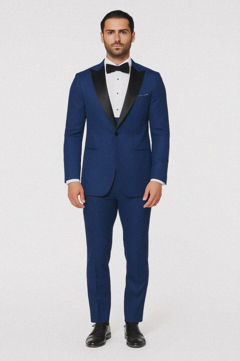 Prom Tuxedo - Wedding Tuxedo Luna Indigo 3-Piece Slim Fit Peak Lapel Tuxedo