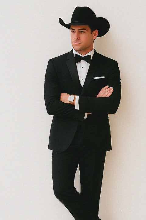 Western Suit - Trajes Para Hombres - Cowboy Formal Attire - Trajes De Novio Notch Lapels - Black