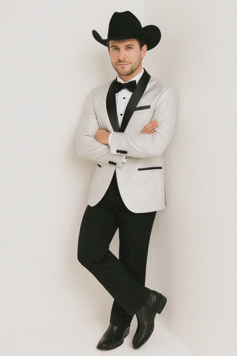 Western Suit - Trajes Para Hombres - Cowboy Formal Attire - Trajes De Novio - Peak Lapel Single Breasted White Suit
