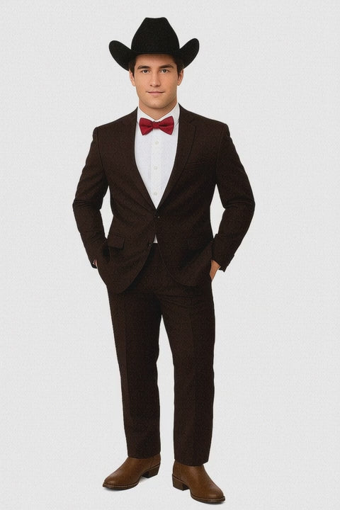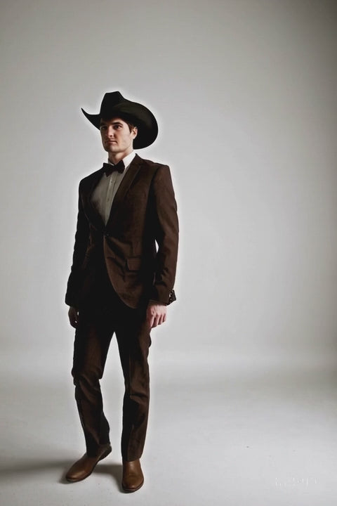 Western Suits For Wedding - Traje Para Hombre - Cowboy Suit With Trim Collar - Slim Fit Cut - Brown Fitted Pants