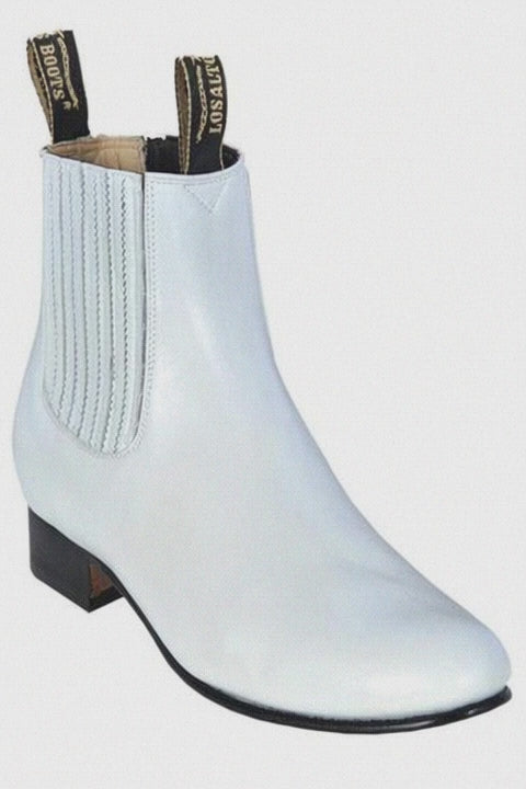 White Los Altos Boots Men's Charro Botin Short Ankle Deer Leather Boots