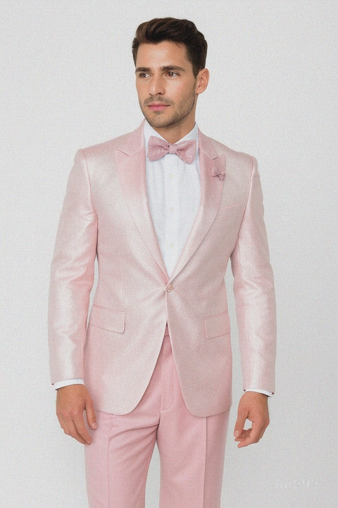 Tiglio Rosso Suit - Classic Fit Athletic Cut 100% Wool Super 150s Italian Fabric Peak Lapel in Color Light Pink