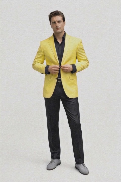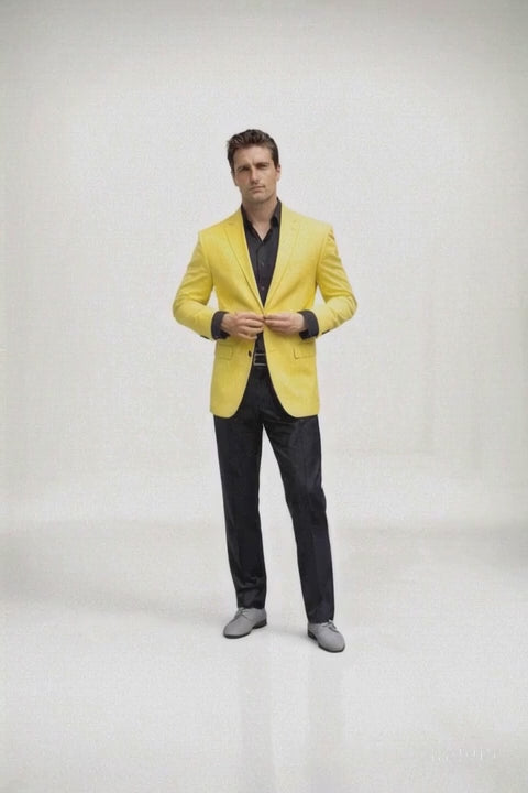 Brighten up your wardrobe with this Men’s Two-Button Yellow Canary Blazer. A bold, eye-catching addition to any wardrobe, this sport coat jacket offers a vibrant canary yellow hue, perfect for those who want to stand out. Whether you’re dressing for casual parties, semi-formal events, or simply want to make a statement, this blazer combines confidence and style with its sharp two-button design and tailored fit.