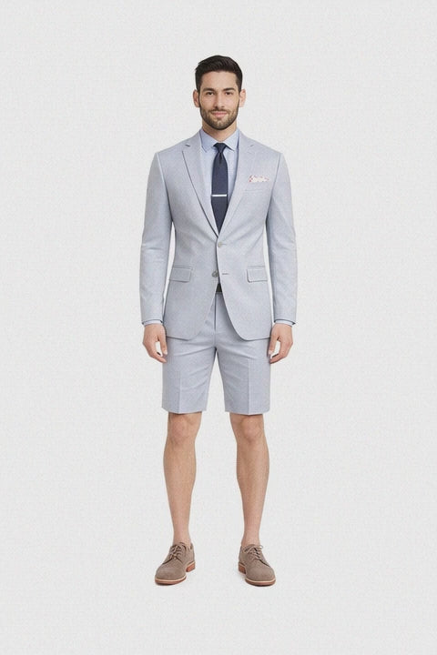 Men's Summer Business Suits With Shorts Pants Set (Sport Coat Looking) Light Gray