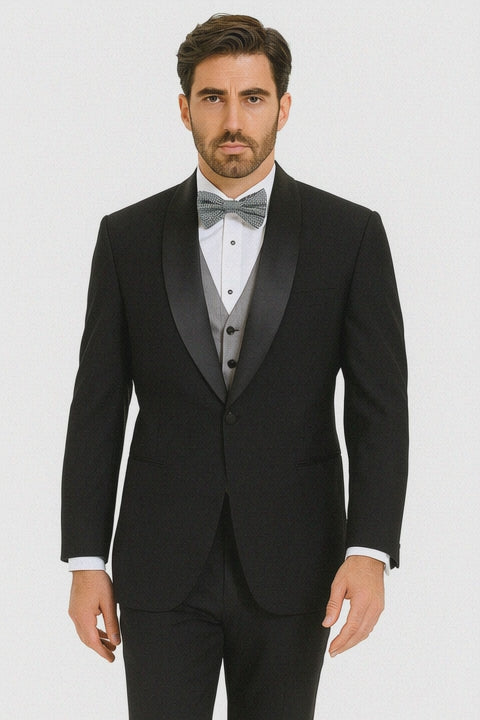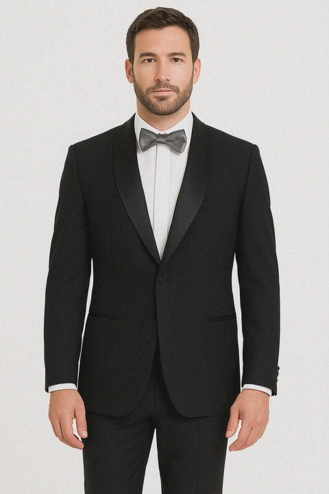 Tux Men'S Tuxedo Shawl Collor Super 120'S Suit + Shirt + Any Color Bow Tie - 100% Percent Wool Fabric Suit - Worsted Wool Business Suit