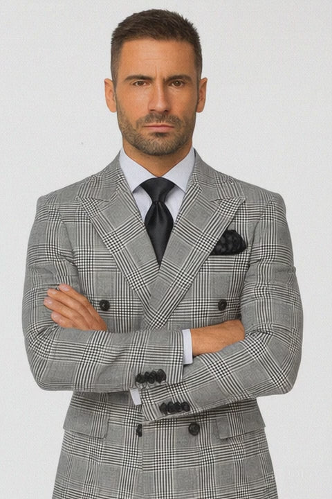 Absolutely love this suit! The plaid design in black and white gives it a strong, confident appearance that stands out. The wide-leg pleated trousers are perfectly balanced — stylish yet comfortable. The fabric quality is exceptional, and the jacket drapes beautifully. This is true Rossiman excellence! – Ricardo M.