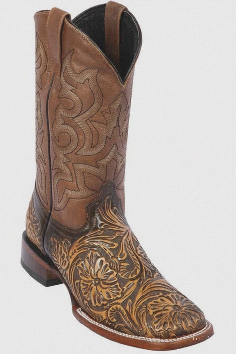Botas de Cuero Cincelada Horma Rodeo Cuadrada