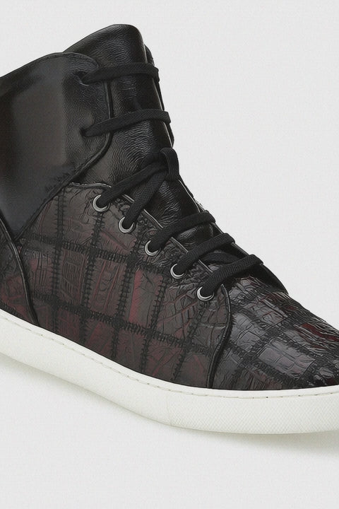 Belvedere Vero Crocodile Patchwork High-Top Sneaker in Honey