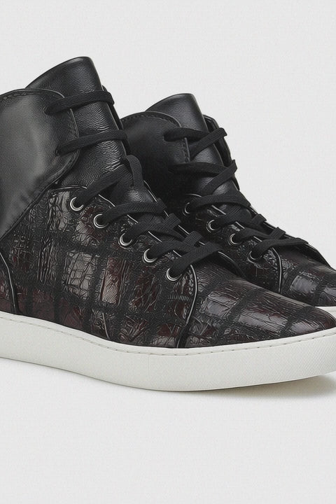 Ready to step outside the ordinary? The Belvedere Vero Crocodile Patchwork High-Top Sneaker in Honey hits different. With its hand-selected crocodile textures set in a honey-gold palette, this hightop doesn’t just update your rotation—it reinvents it. Whether you’re a sneakerhead looking for something that’s rare or all-in on standout luxury, this pair says you know the difference.
