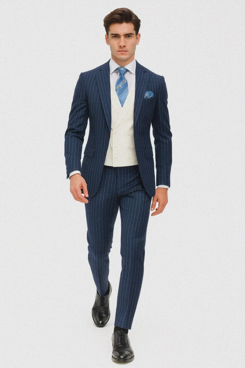 • Men's Blue 2 Buttons Chalk Bold Stripe.