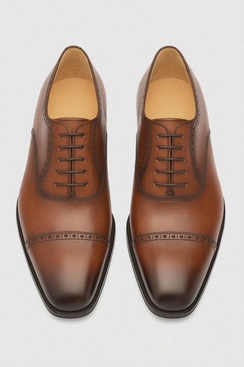 With its rich cognac finish and impeccable construction, the Amaro Cap Toe Oxford is a versatile and essential addition to any gentleman’s dress wardrobe.