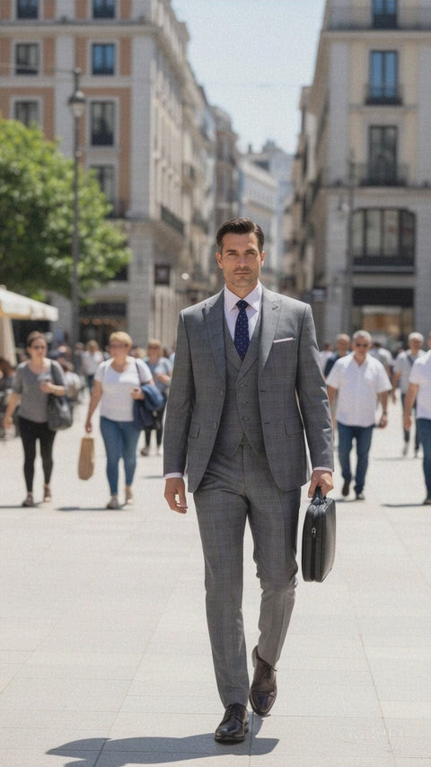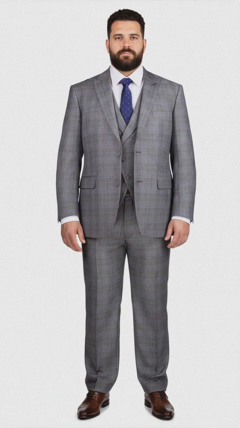 Ideal for business meetings, weddings, formal events, and upscale social gatherings, this grey plaid vested suit delivers sophistication, authority, and timeless style.