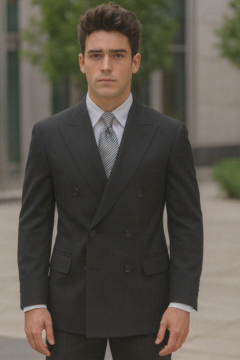 Mens Steve Harvey Brand Suit Double Breasted in Color Black Modern Fit