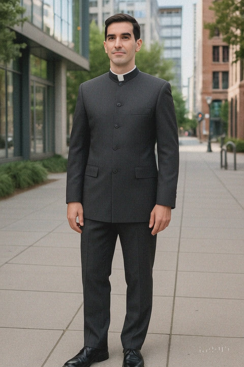 Make a sleek and cultured statement with this Men’s Black Pinstripe Mandarin Collar Suit. Featuring a unique 5-button Nehru-style jacket, this three-piece outfit blends traditional Eastern-inspired tailoring with modern fashion. The subtle pinstripe adds elegance, while the banded collar offers a clean, minimalist alternative to conventional lapels—perfect for weddings, formal events, or fashion-forward dressers.